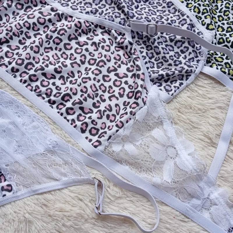 Conjunto print Textura suave, de microfibra sin aros con encaje + less regulable de encaje